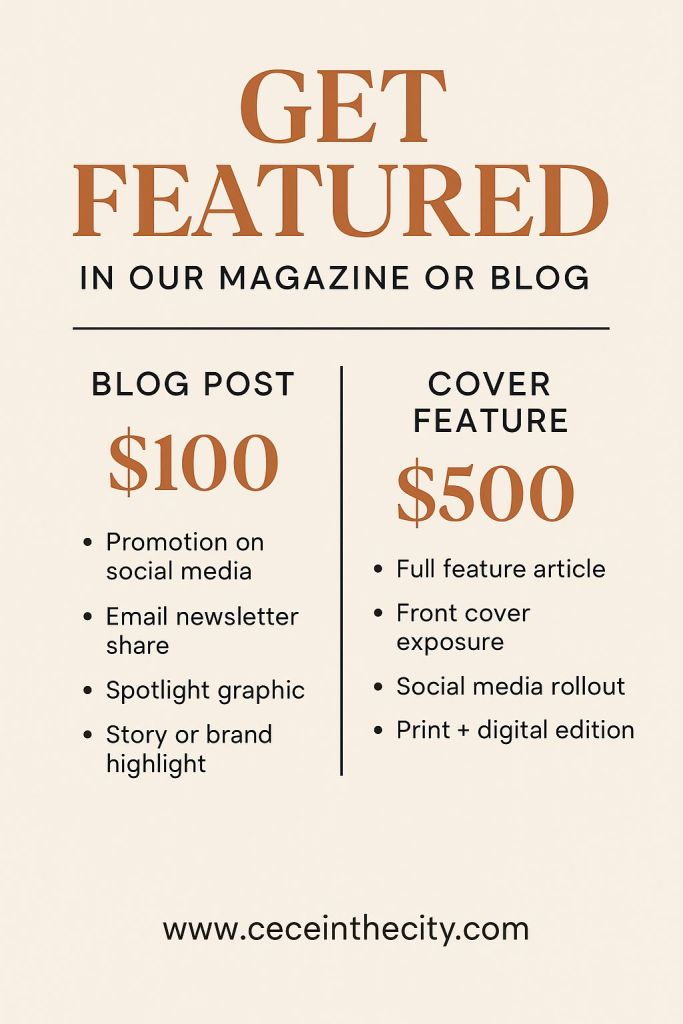 I’m also still running a special on my blog: just $100 to highlight your book, product, or brand — this includes promotion on social media, an email blast, and a feature in the Cece in the City newsletter. Great opportunity for authors, creatives, and small business owners to shine! 🌟