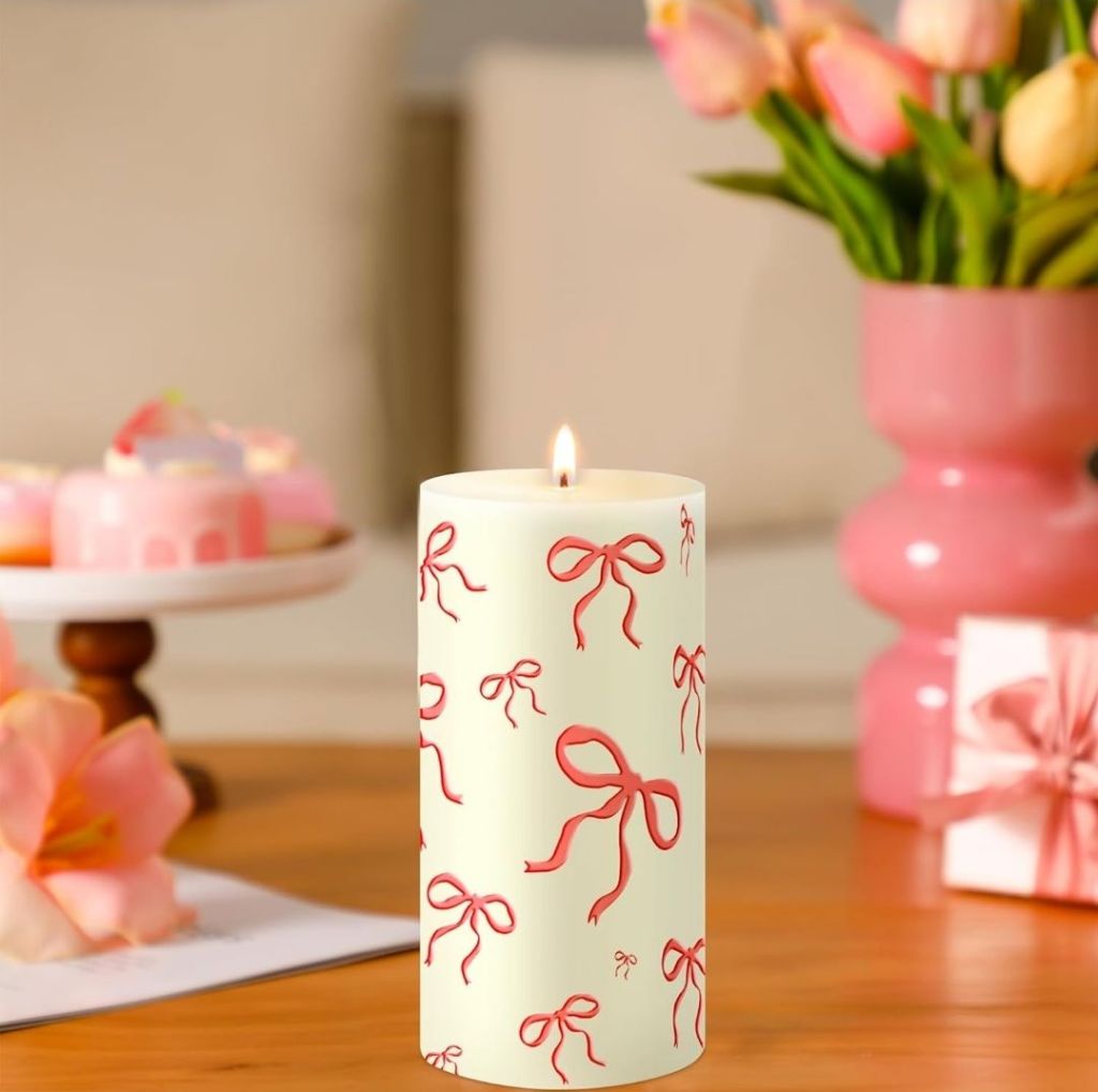 💕 Debossed Pink Bow Pillar Candle – This one is giving all the coquette vibes! So cute for home décor, journaling nights, or setting the mood without heavy scents. Check it out here.
