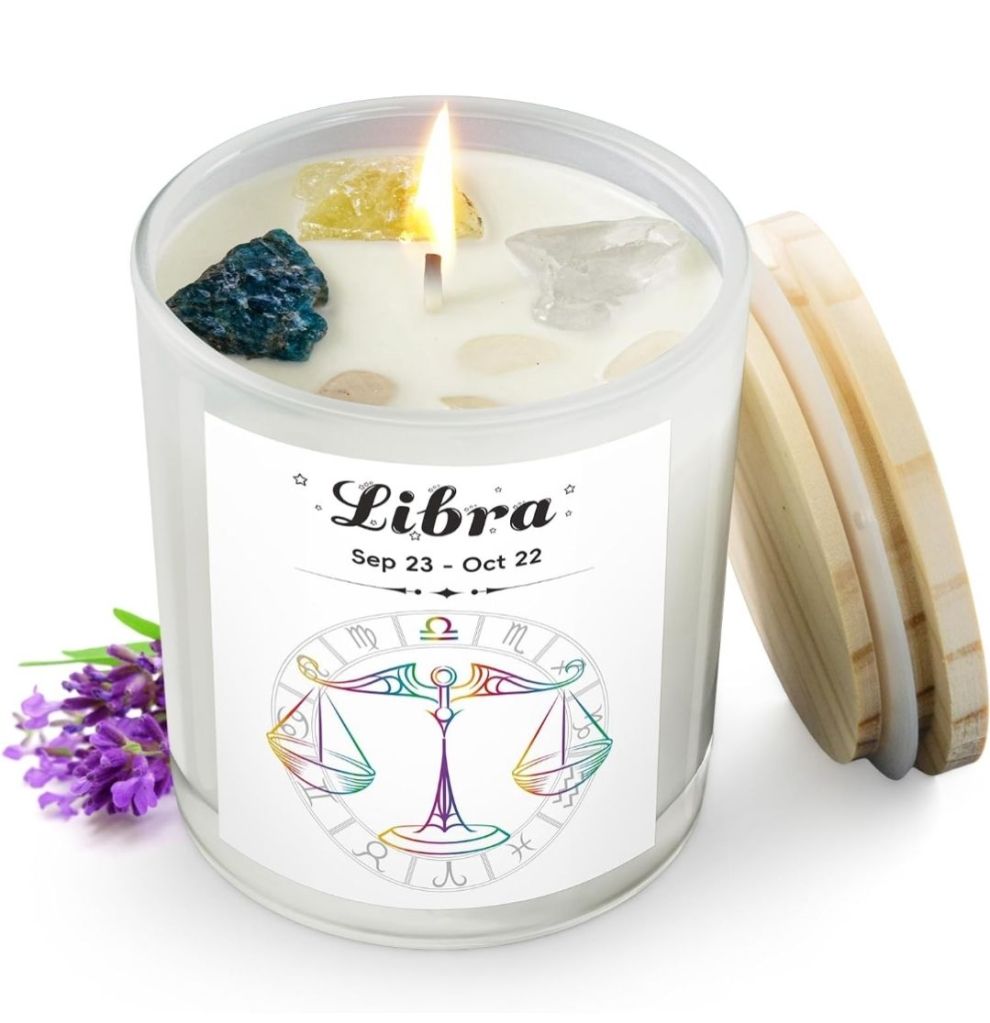 ♎️ Libra Gift Candle with Crystals – My September/October babies, this one’s for you! Beautiful, relaxing, and makes the perfect birthday gift (or treat for yourself). Grab it here.