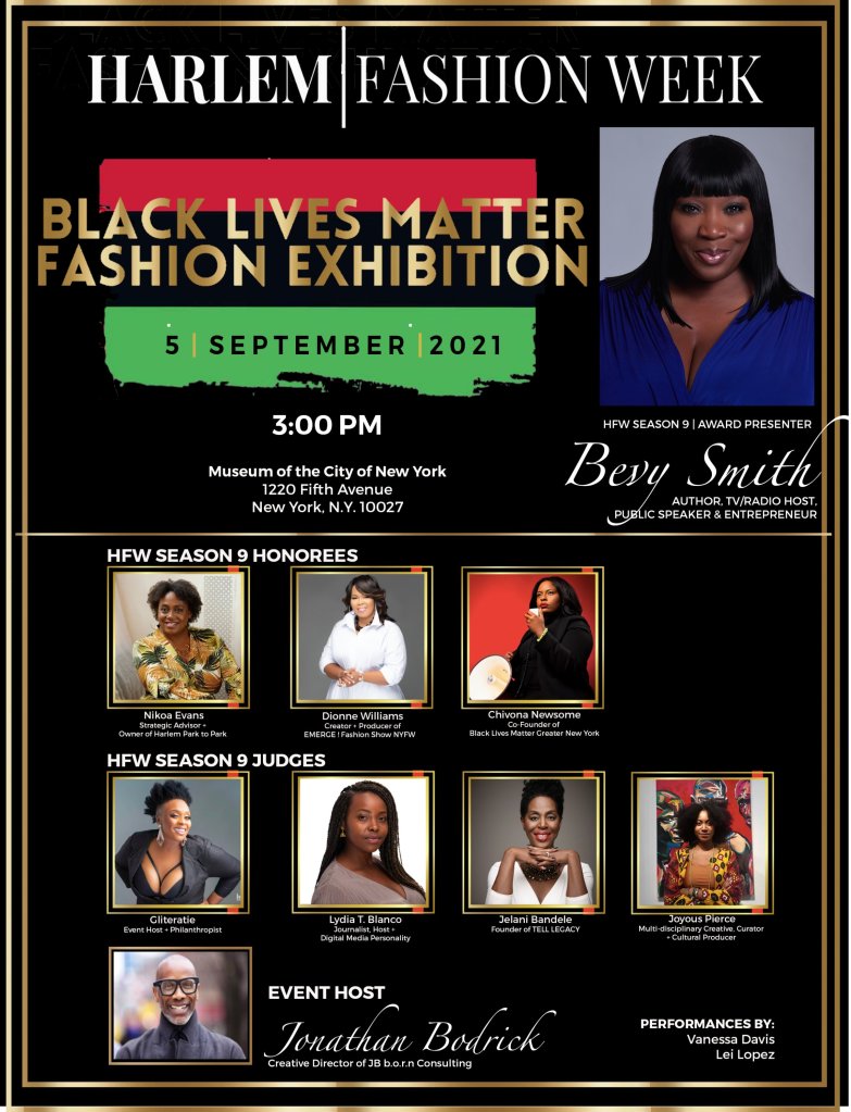 This event will have dance, poetry, fashion and music. Leading the event is Jonathan Bodrick who is the host and currently the creative director of “Jb”b.o.r.n consulting. Award Presenter Bevy Smith (Author Tv/Radio host, public speaker & Entrepreneur). HFW season 9 Judge’s include Gliteratie (event host), Lyida T. Blanco (Journalist) Jelanie Bandele (founder of Tell Legacy), and Joyous Pierce (multi-disciplinary creative). HWF season #9 Honorees are Nikoa Evans (Strategic Advisor) Dionee Williams (Creator+producer of EMRGE, Chivona Newsome (Co-founder of Black Lives Matter greater New York). Performances from: Vanessa Davis and Lei Lopez.