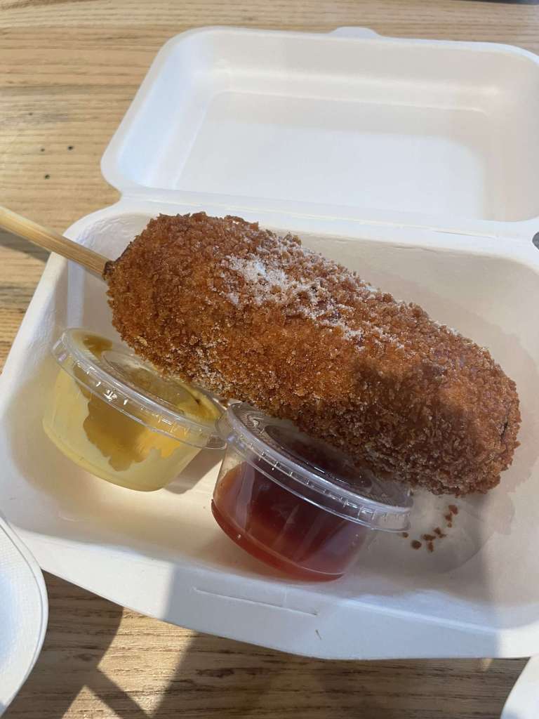 Had a chance to check out this restaurant. My daughter and I wanted to try something new. This place is in Ponce City Market. It’s been trending on TikTok, the Korean Hotdog. We tried 3 Korean dogs. The first one was sugar coated, the next one was plain, and the last one was half of Half.