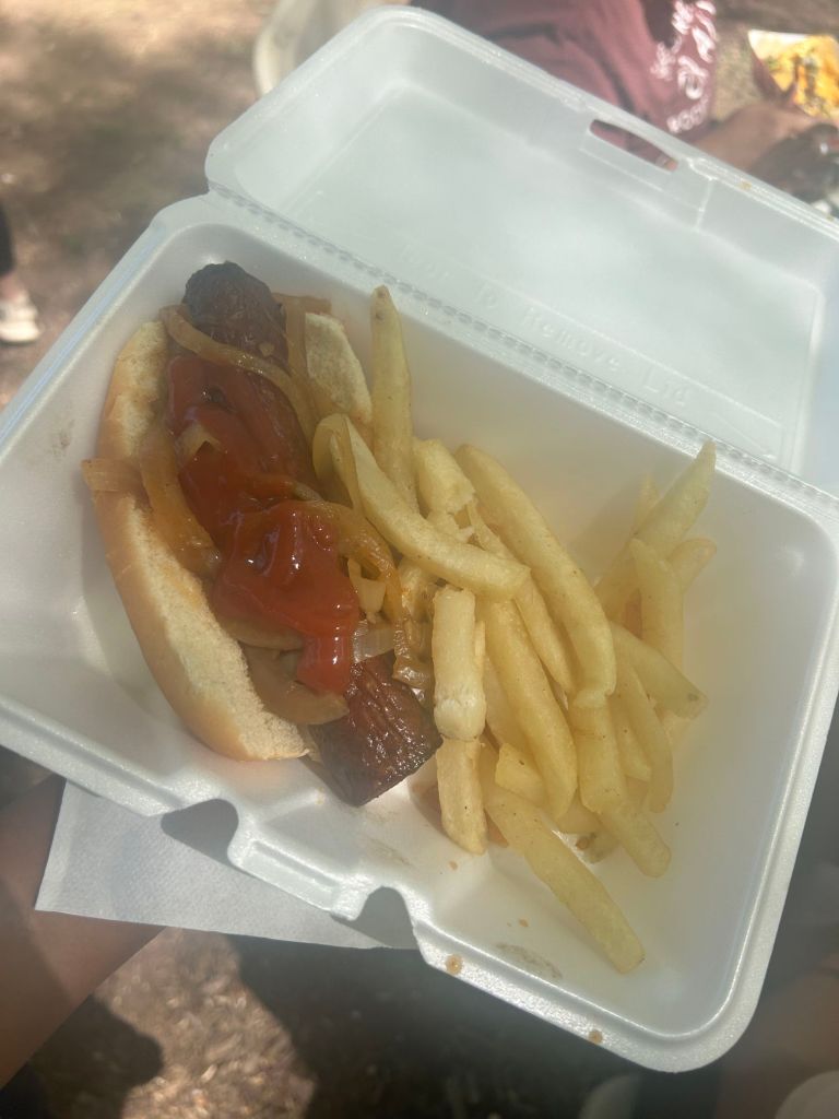 So of course I had to try something fun. I ordered a pretzel bun chili dog with tots, and it definitely hit the spot. After eating, we explored the adorable downtown area, popping into local shops—including Frankfurt Doner & Meats, where my friend grabbed different sausages and I sampled a few (and yes, they were delicious!).