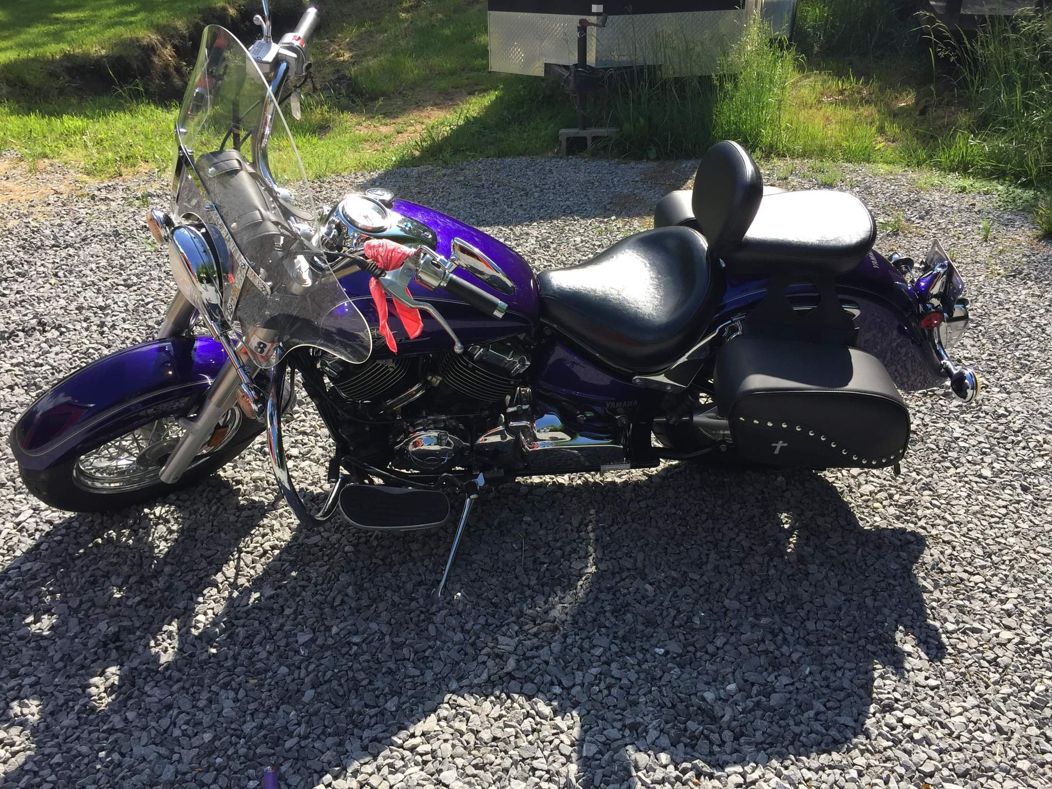 Hello, my name is Sophie and this is my orange Victoria, a 2002 Yamaha V star 1100 with my friend’s 2003 fat boy (Harley Davidson) 1400.